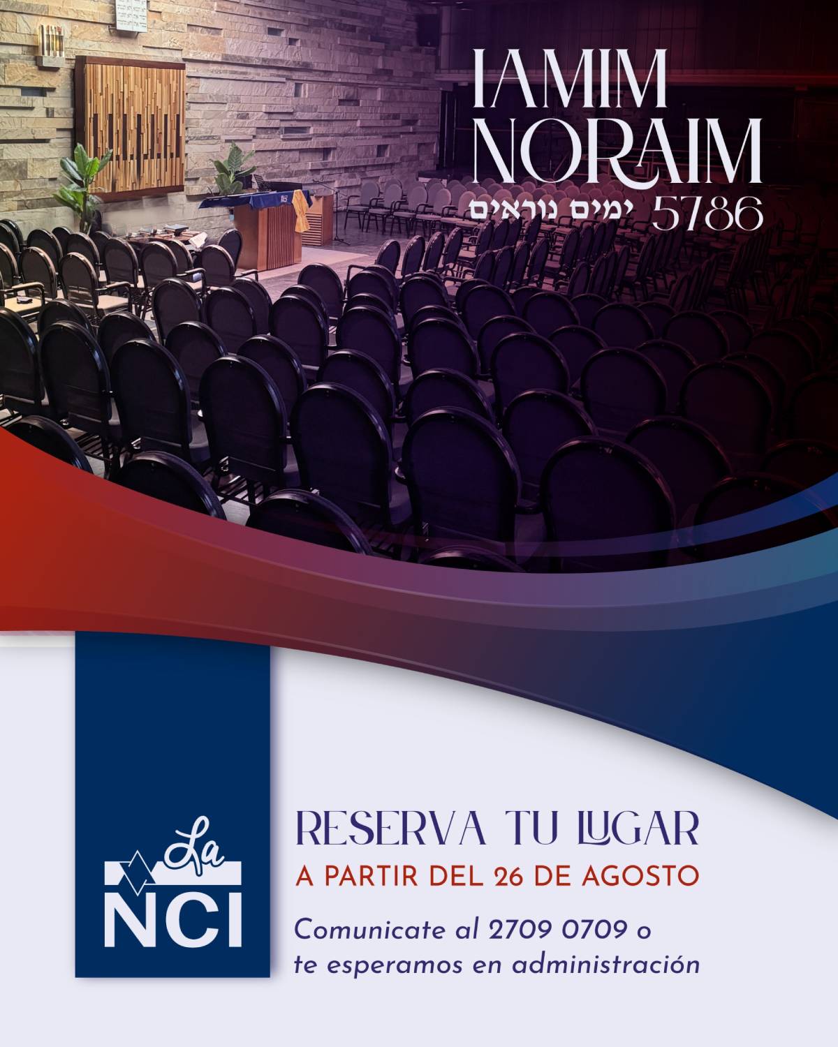 A partir del próximo martes 26 de agosto ya estará disponible la reserva de asientos para estos Iamim Noraim 5786. ¡Te esperamos!